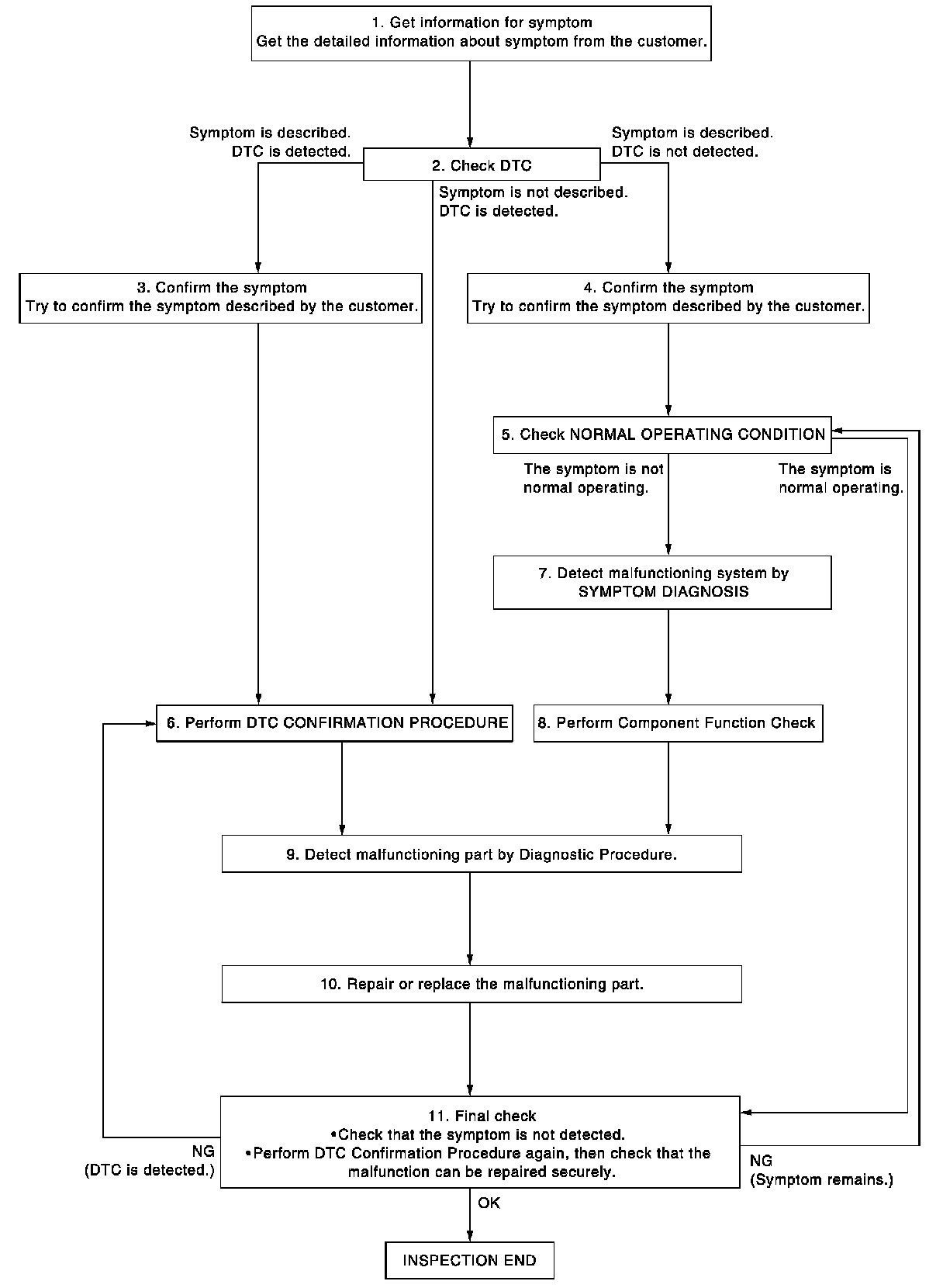 Isolate the malfunctioning point by performing the diagnosis procedure relevant to the symptom during the component diagnosis.