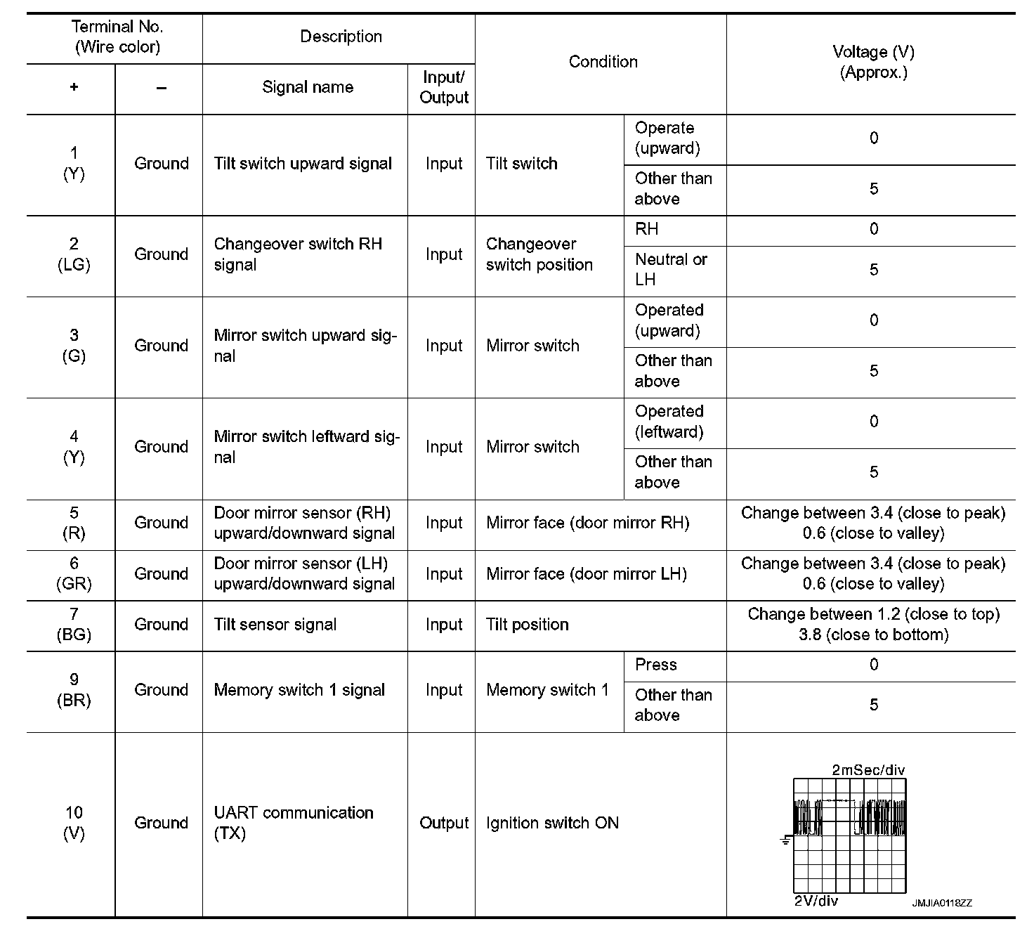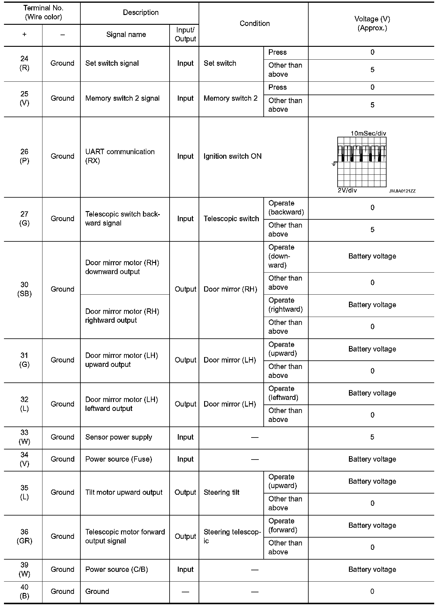 Pinout Values and Diagnostic Parameters