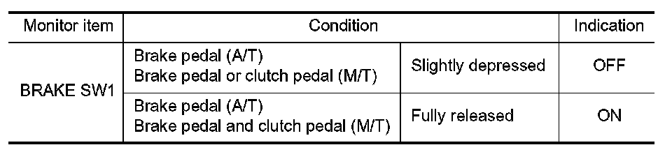 3.Check "BRAKE SW-1" indication under the following conditions.