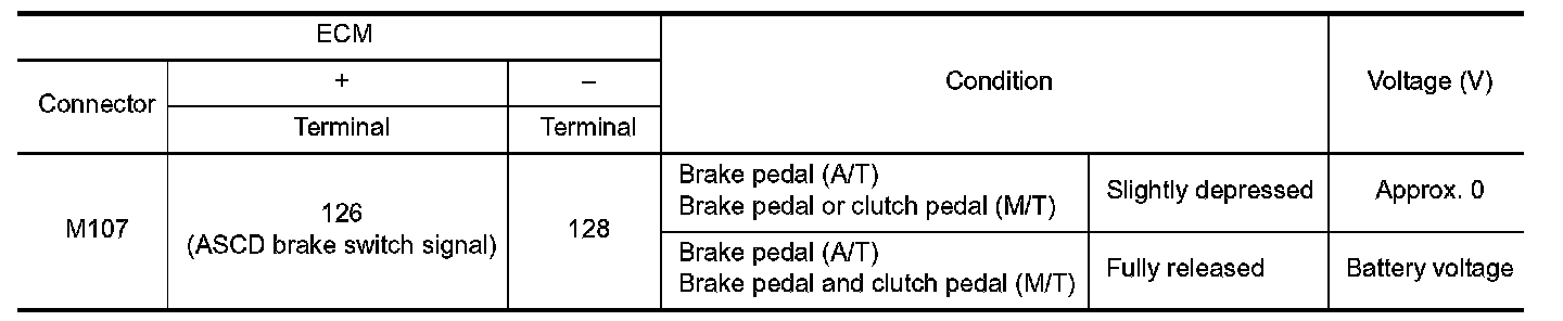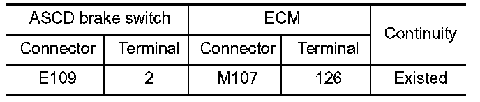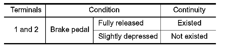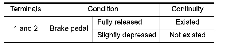 2.Check the continuity between ASCD brake switch terminals under the following conditions.