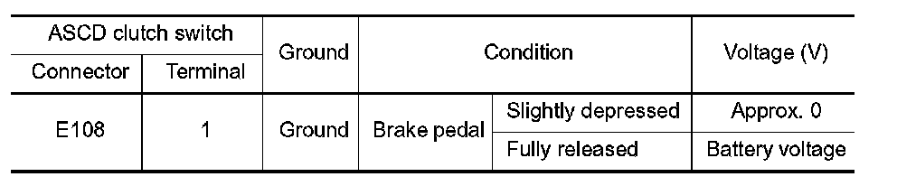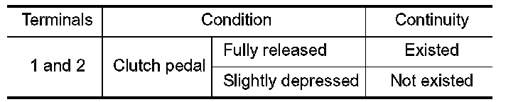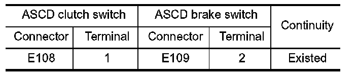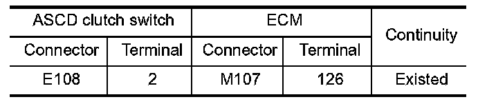 2.Check the continuity between ASCD clutch switch terminals under the following conditions.