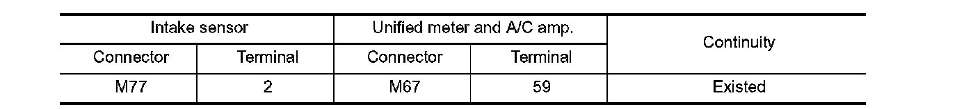 3.Check continuity between intake sensor harness connector and unified meter and A/C amp. harness connector.