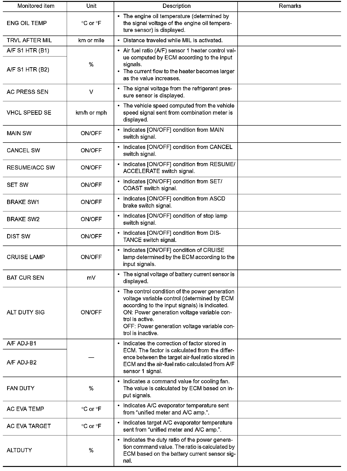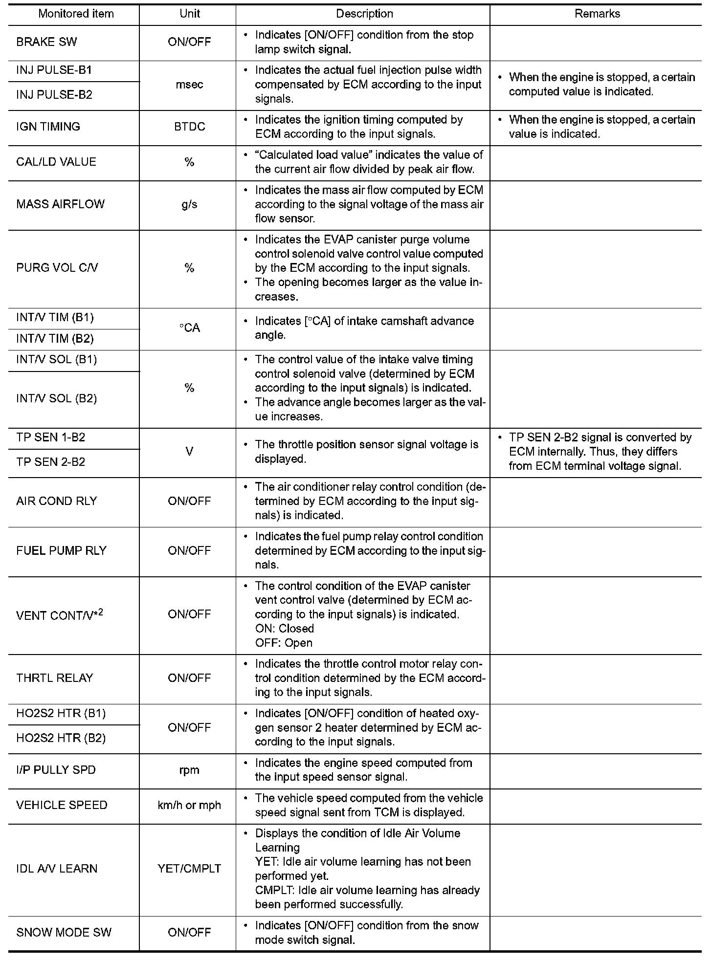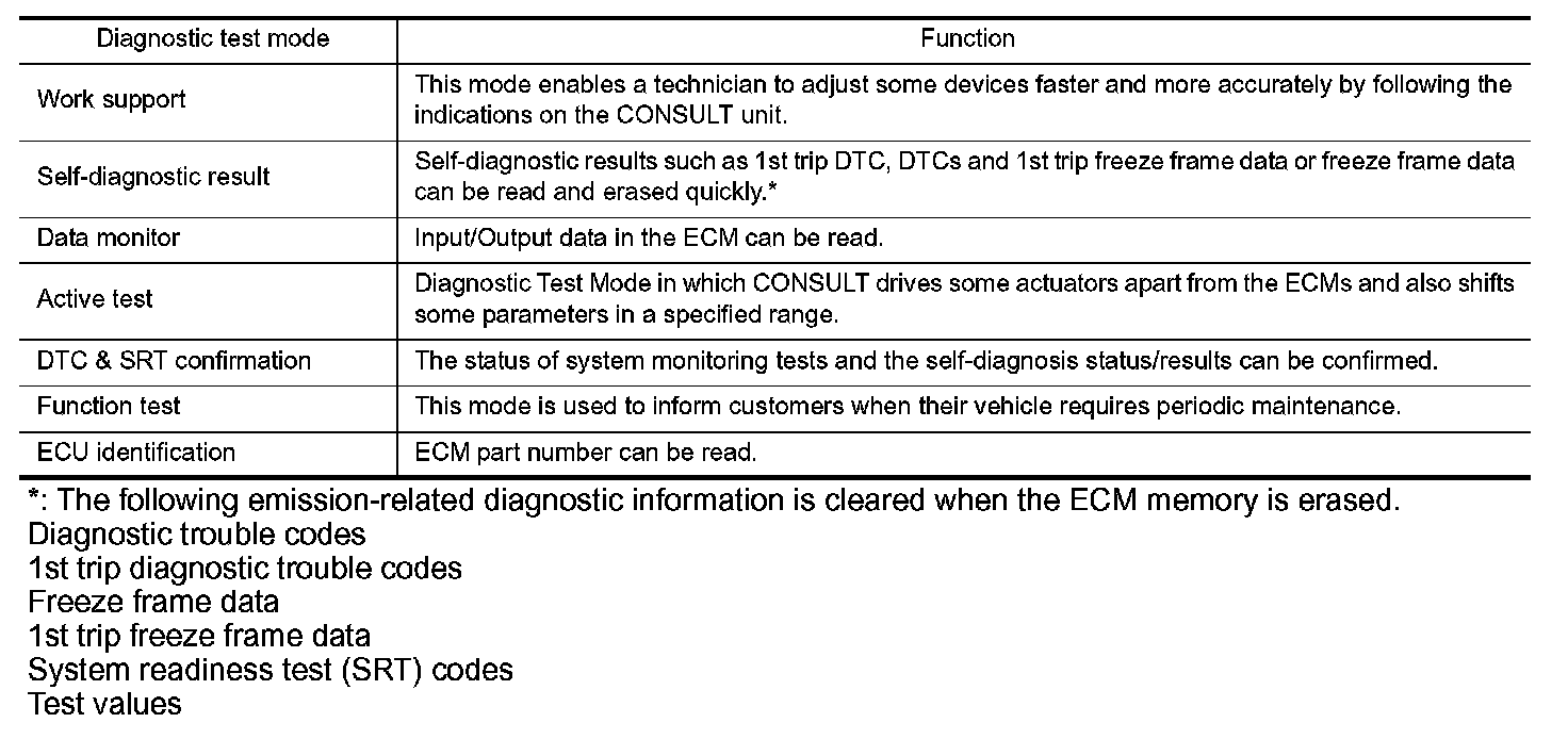 *: The following emission-related diagnostic information is cleared when the ECM memory is erased.