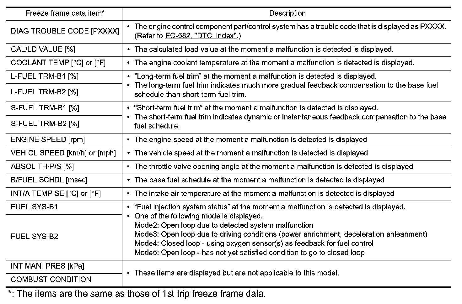Freeze Frame Data and 1st Trip Freeze Frame Data