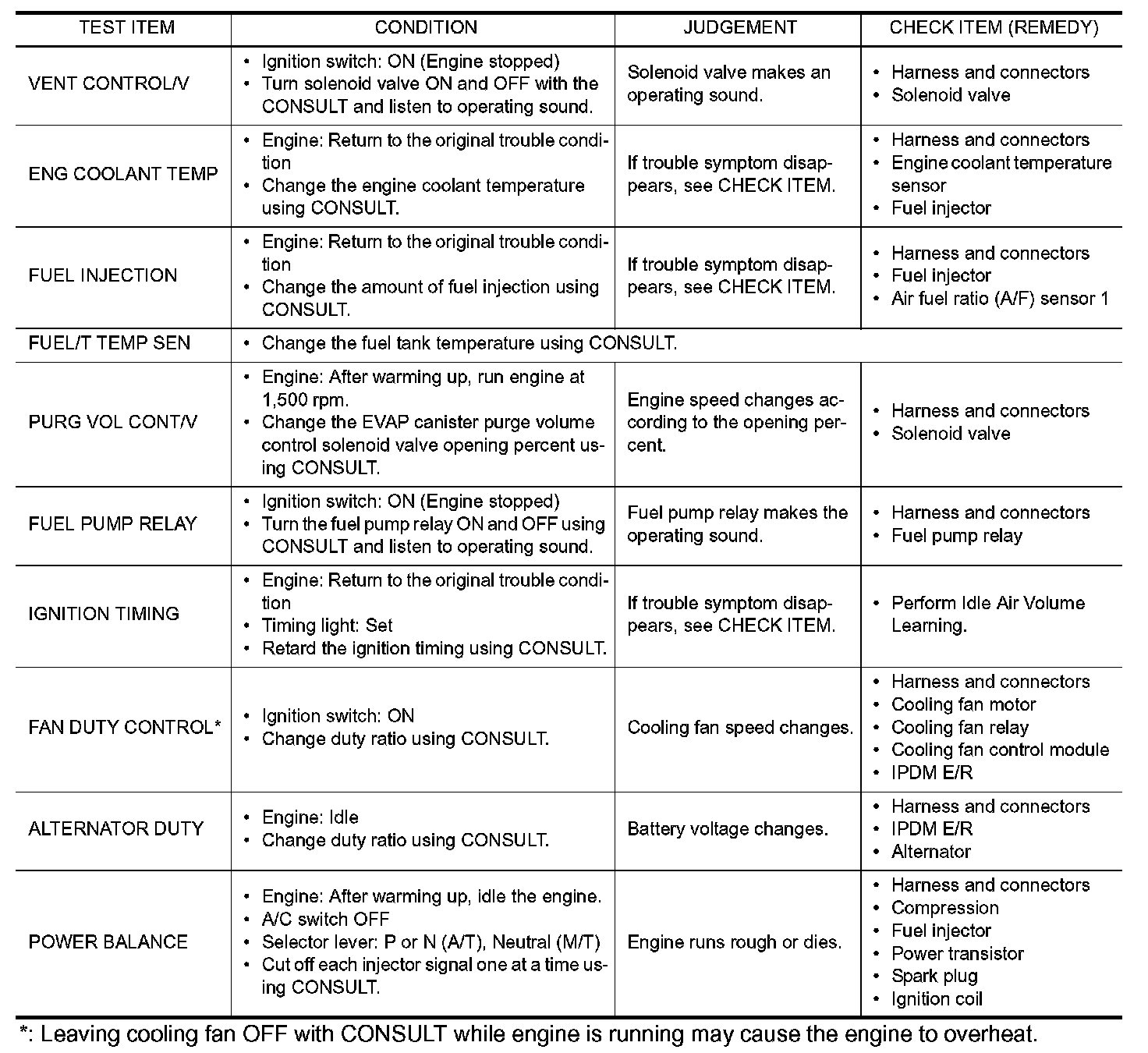 *: Leaving cooling fan OFF with CONSULT while engine is running may cause the engine to overheat.