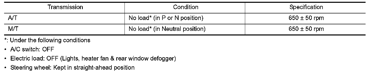 Idle Speed: Specifications
