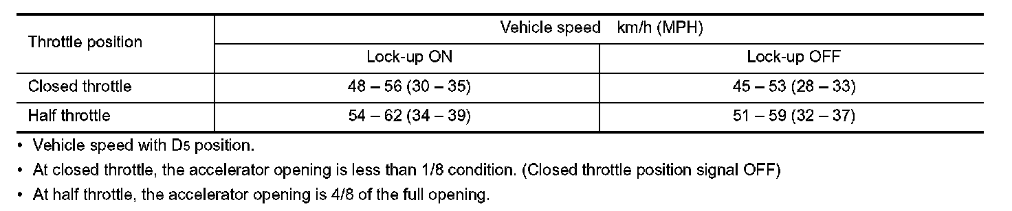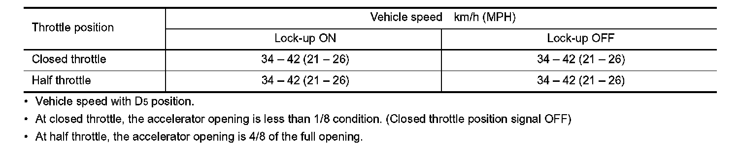 Vehicle Speed at Which Lock-up Occurs/Releases