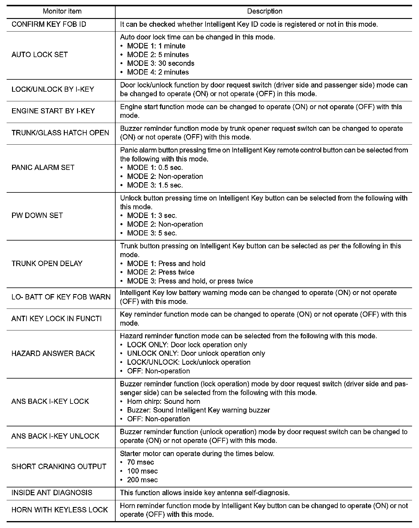 INTELLIGENT KEY : CONSULT Function (BCM - INTELLIGENT KEY)