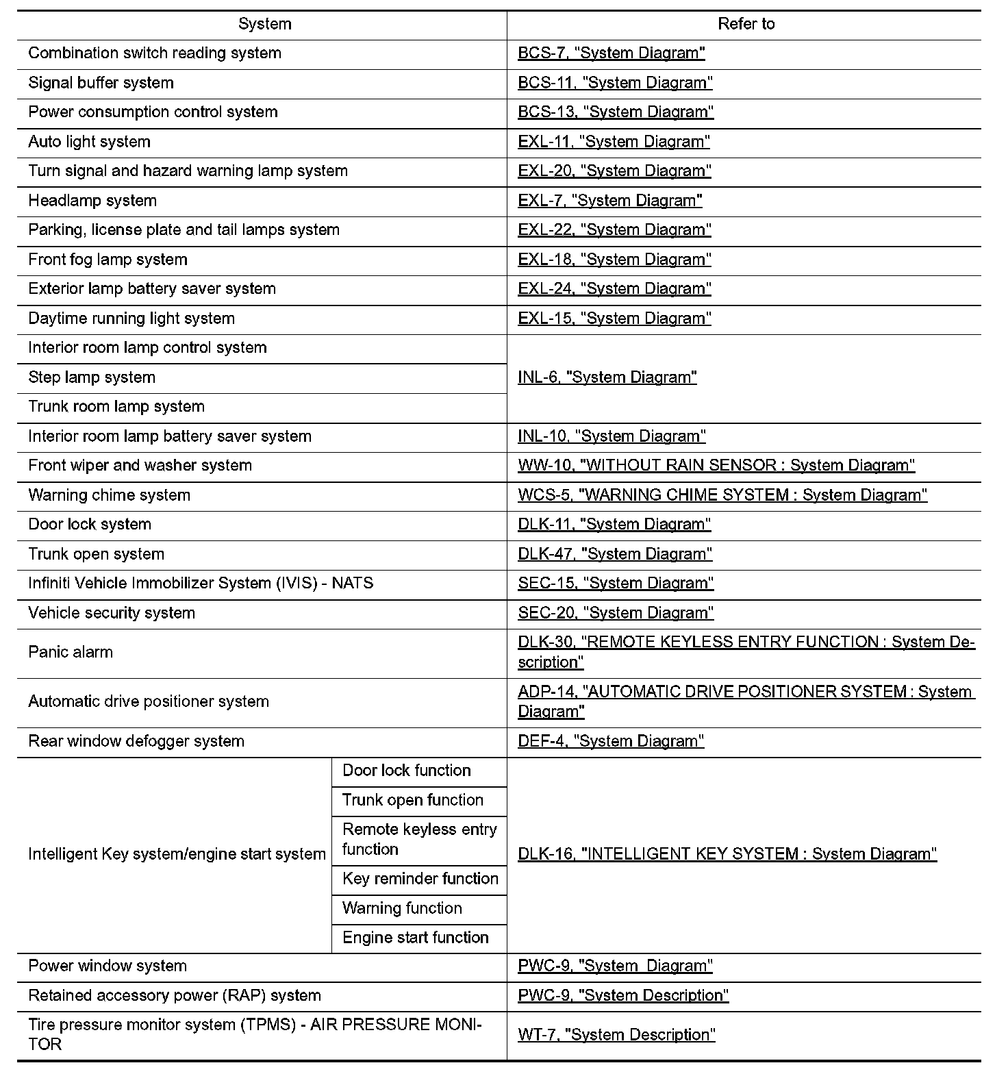 - BCM is equipped with the diagnosis function that performs the diagnosis with CONSULT and various settings.