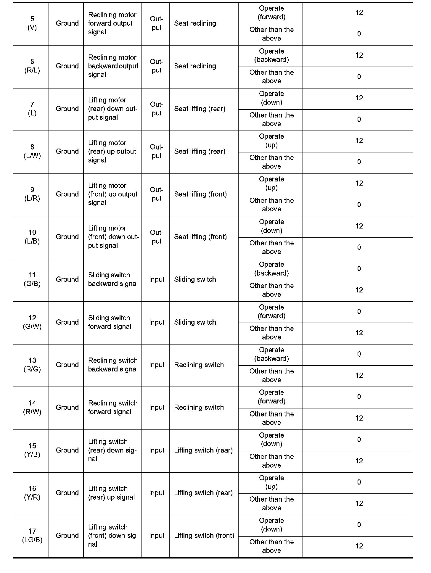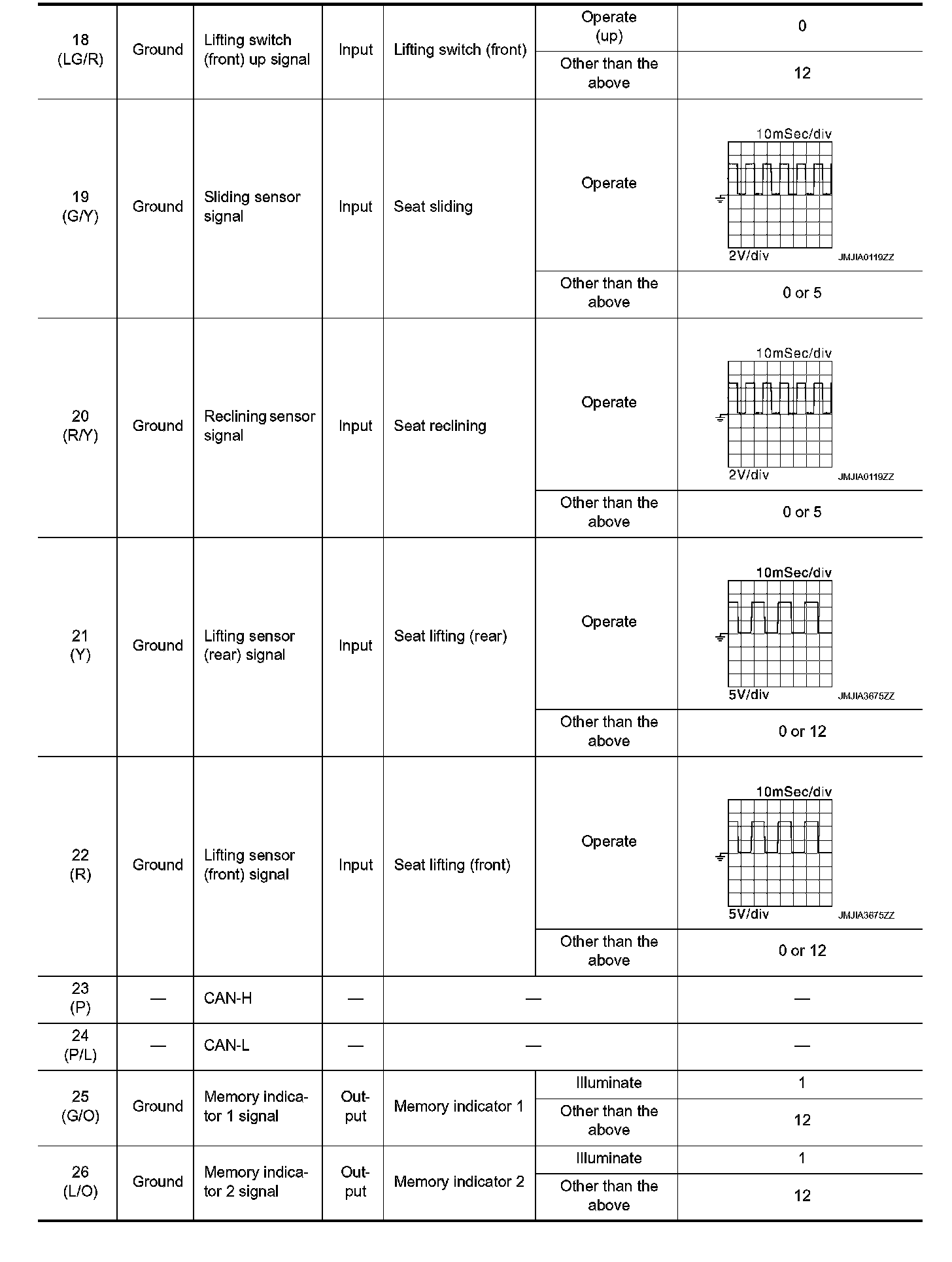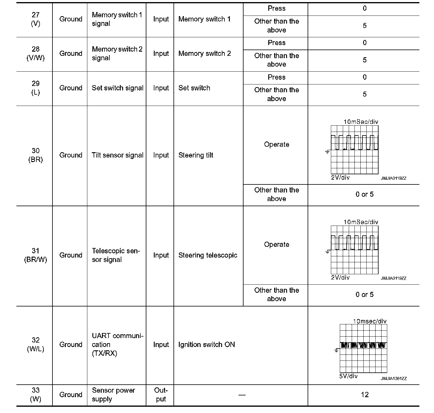 Pinout Values and Diagnostic Parameters