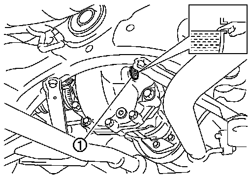 - Remove filler plug (1) and check oil level from filler plug mounting hole as shown in the figure.