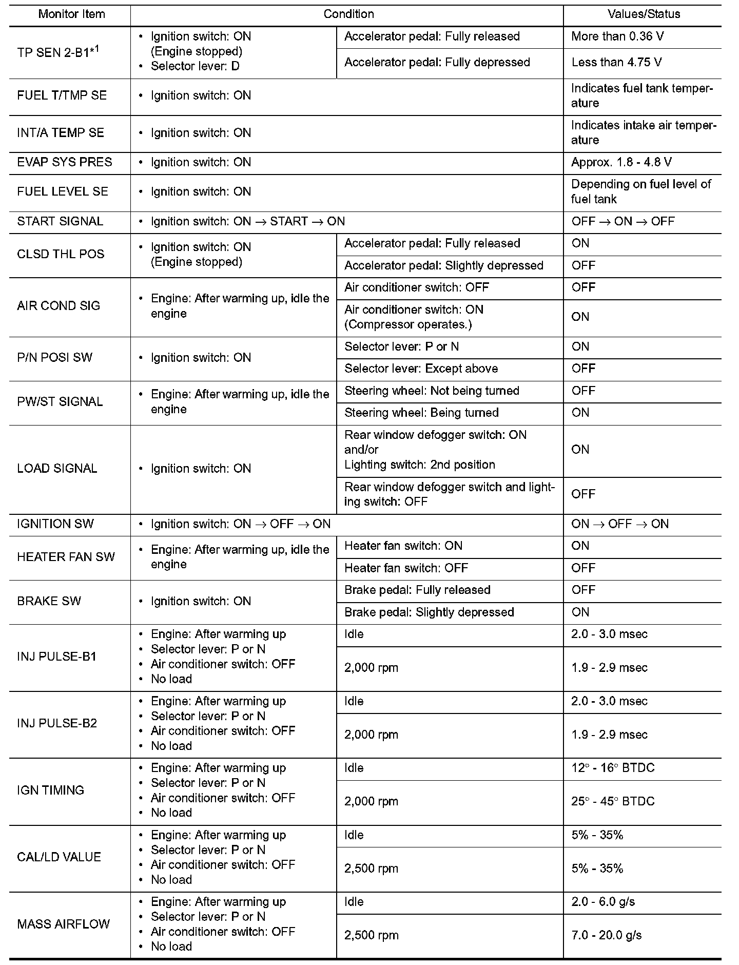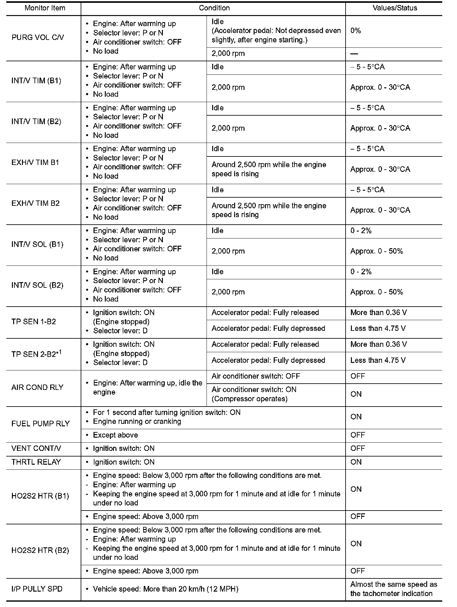 i.e. Adjust ignition timing with a timing light before monitoring IGN TIMING, because the monitor may show the specification data in spite of the ignition timing not being adjusted to the specification data. This IGN TIMING monitors the data calculated by the ECM according to the signals input from the camshaft position sensor and other ignition timing related sensors.
