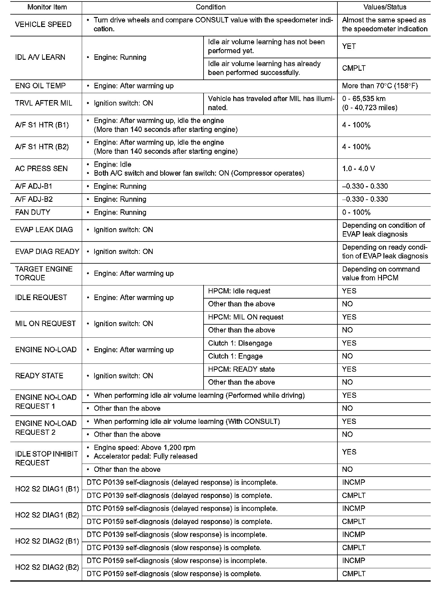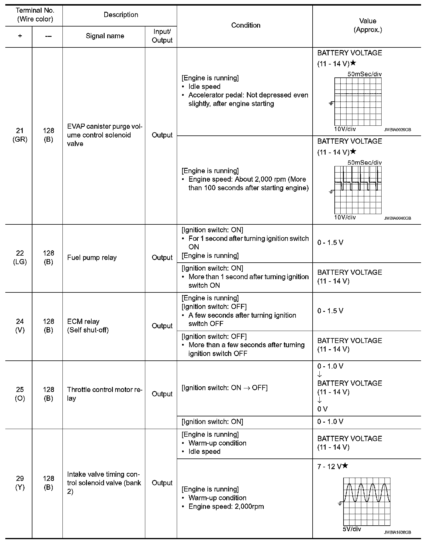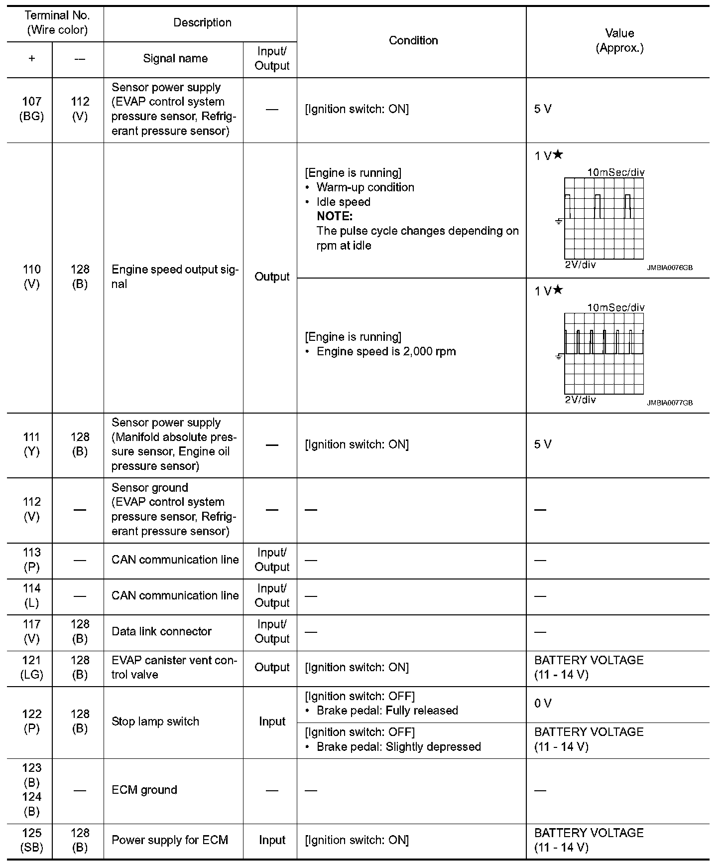 - Specification data are output/input values which are detected or supplied by the ECM at the connector.