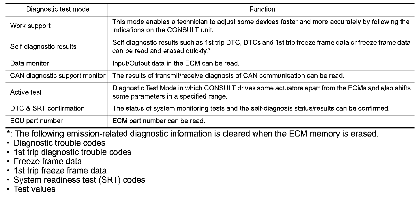 *: The following emission-related diagnostic information is cleared when the ECM memory is erased.