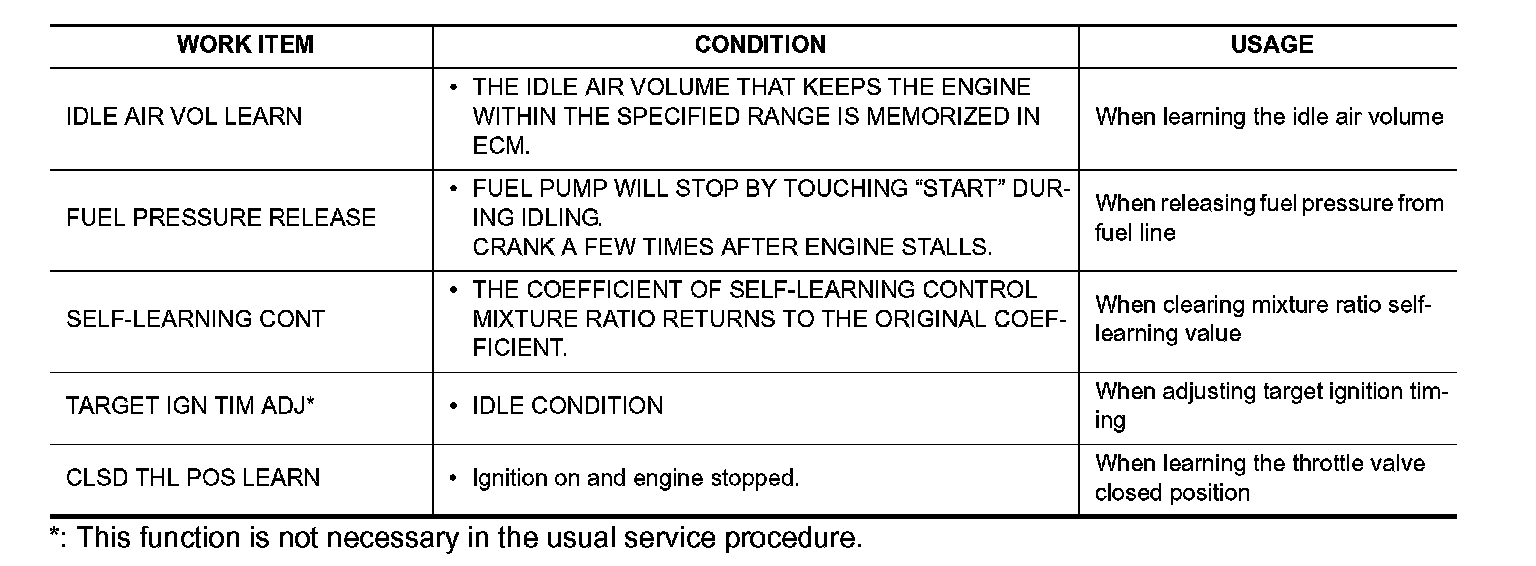*: This function is not necessary in the usual service procedure.