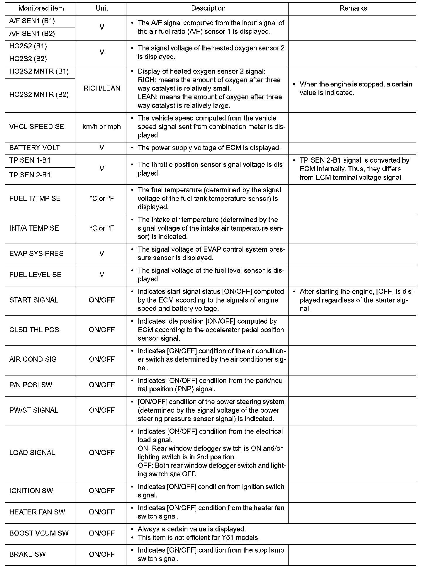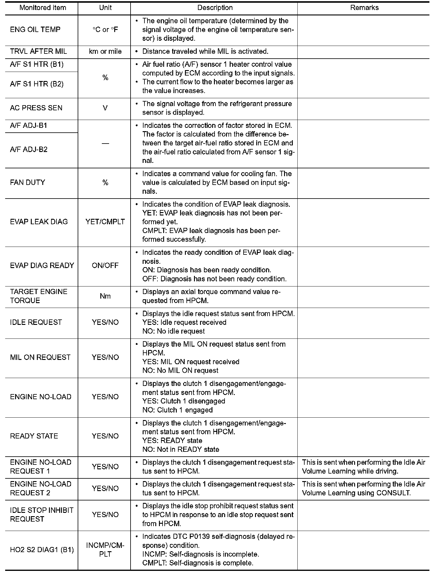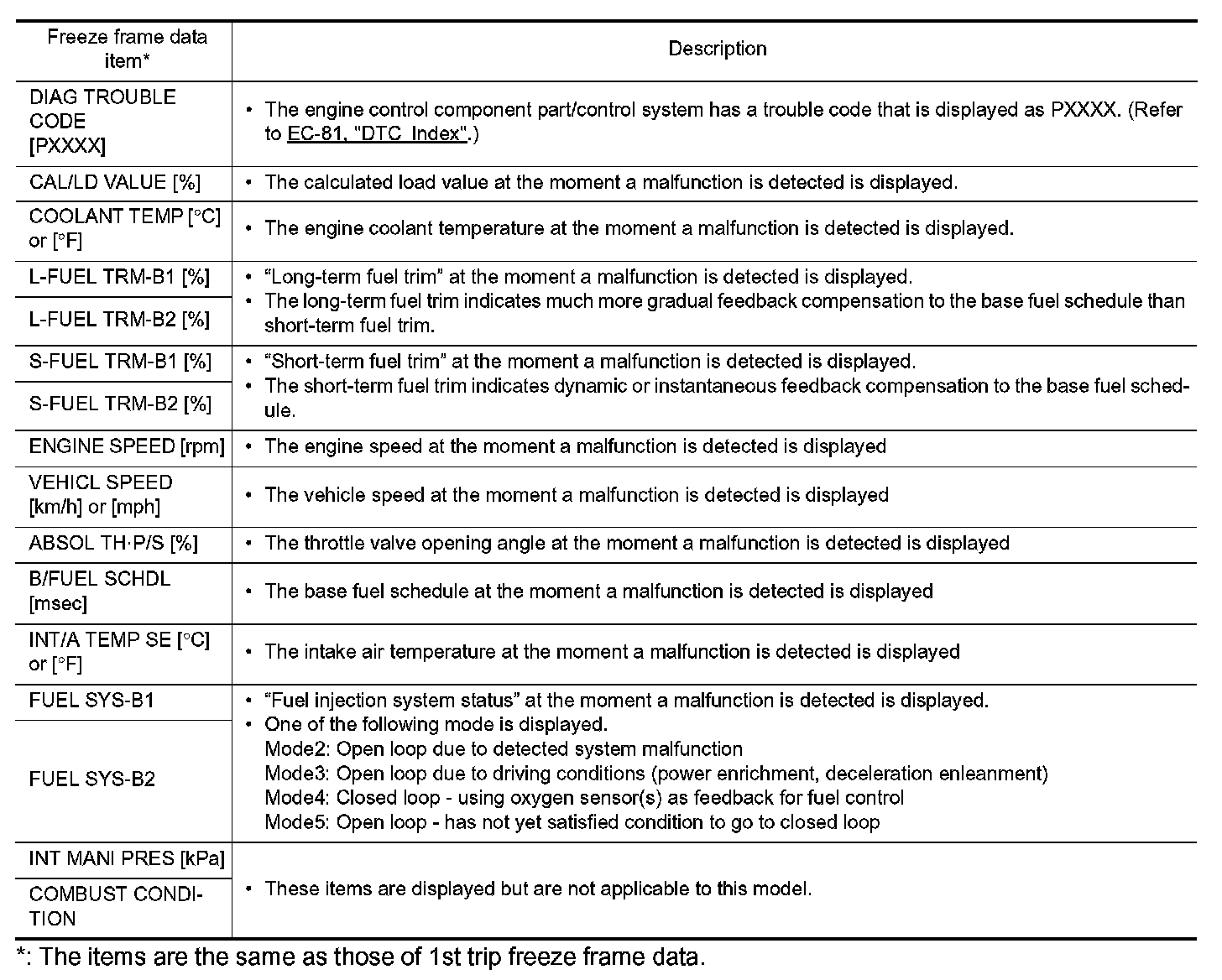 *: The items are the same as those of 1st trip freeze frame data.