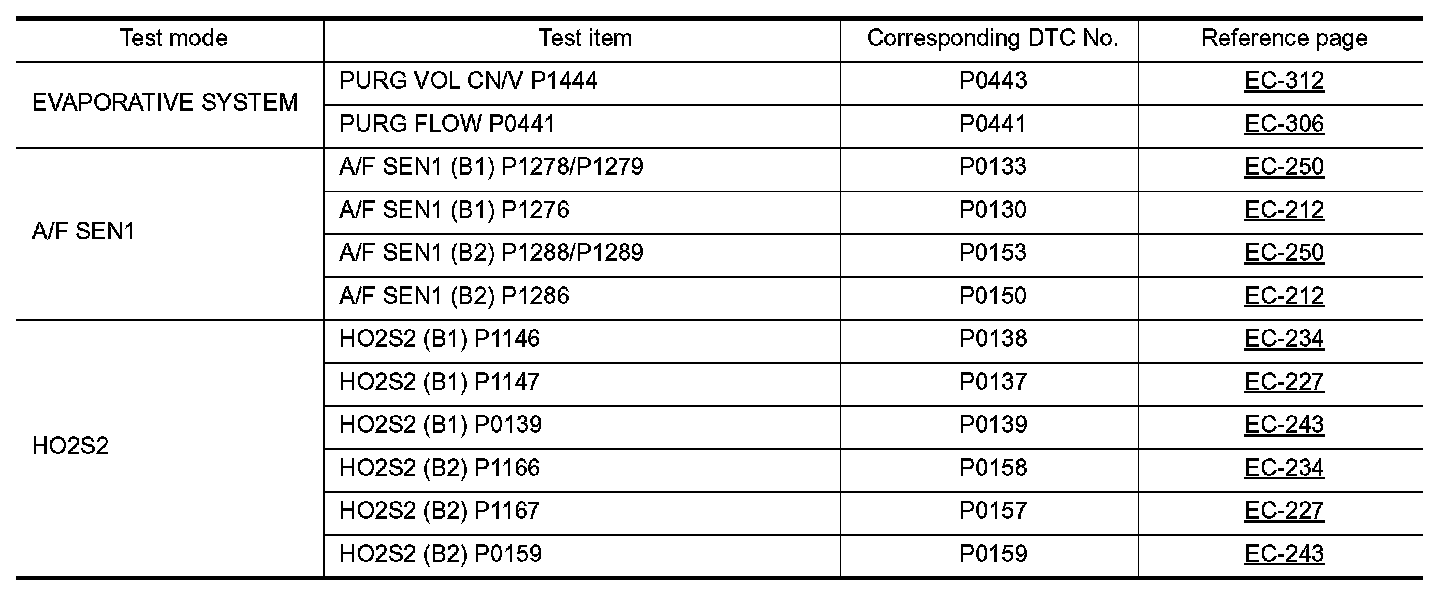 Regarding items of DTC and 1st trip DTC, Testing and Inspection.