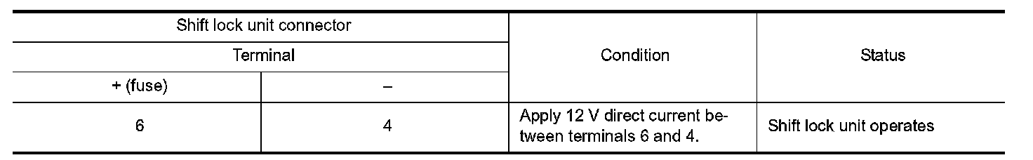 Component Inspection (Shift Lock Unit)