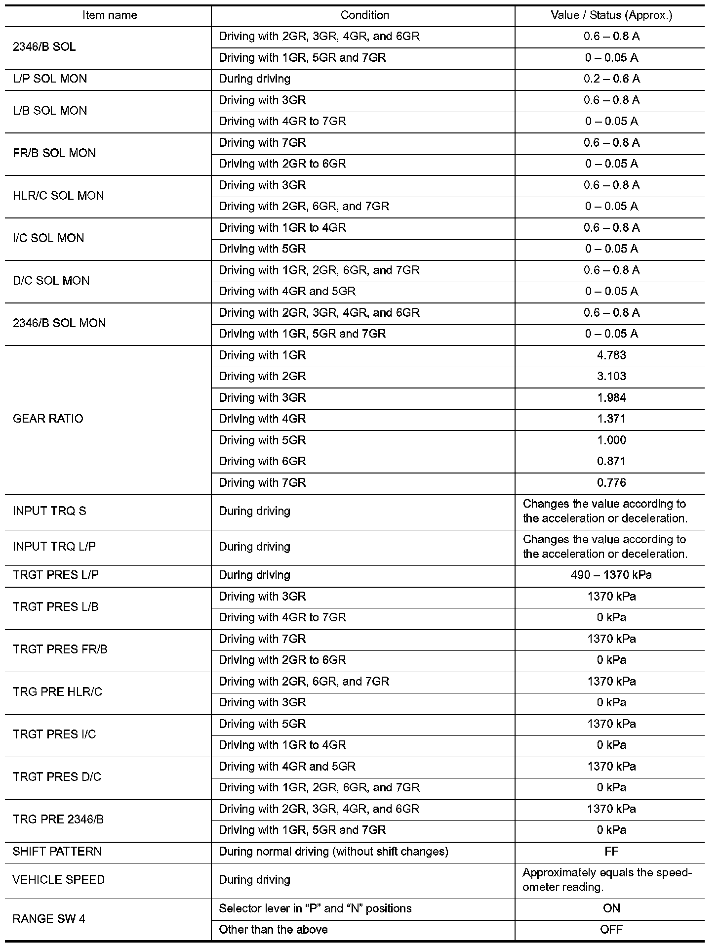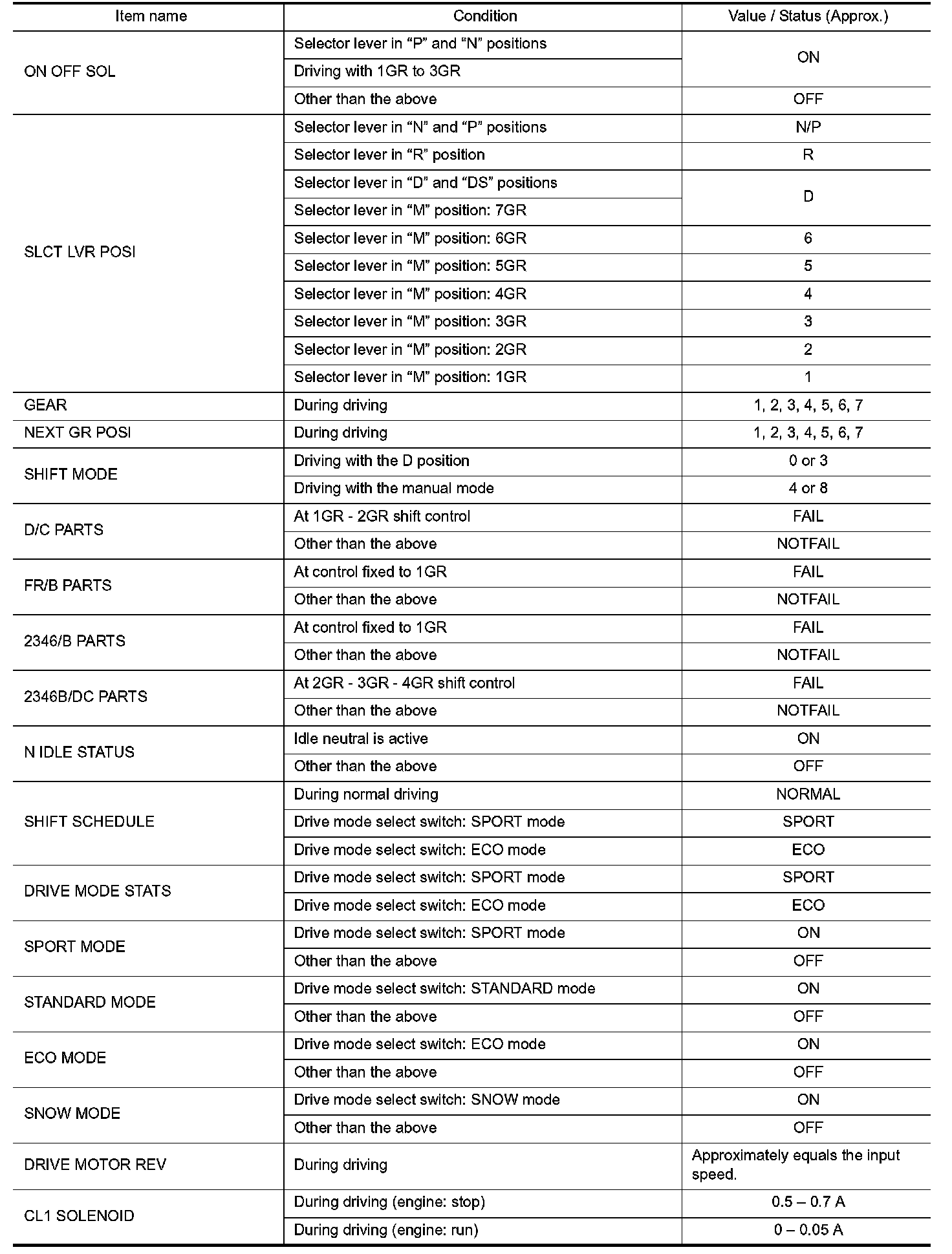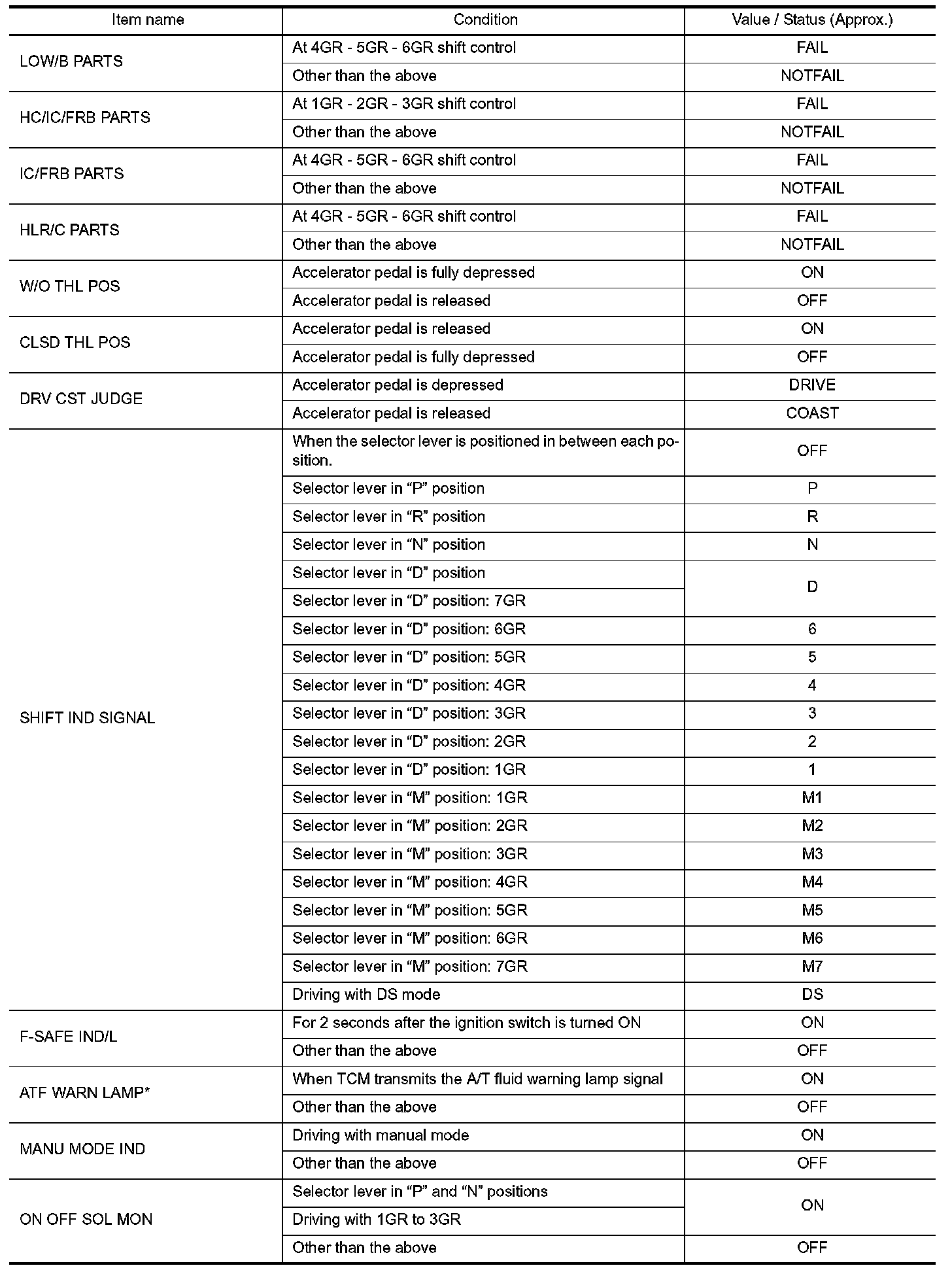 2.Shift schedule (that implies gear position) on CONSULT may slightly differ from that is described in Service Manual. This occurs because of the reasons as per the following: