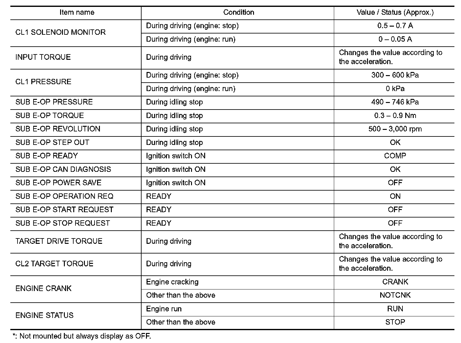 CONSULT DATA MONITOR STANDARD VALUE