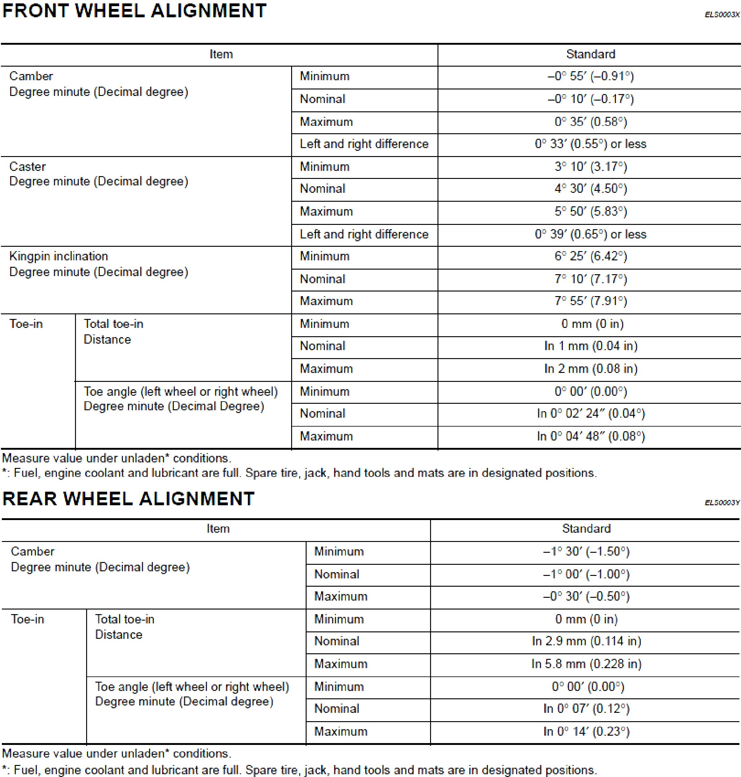 Wheel Alignment Specifications