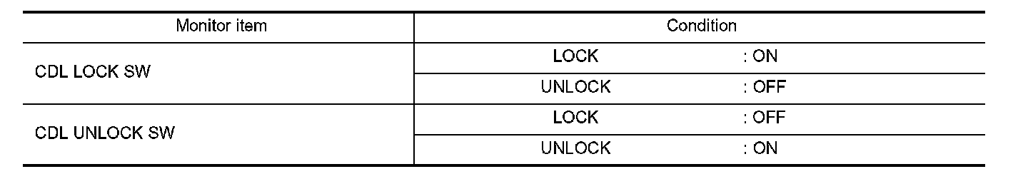 Check ("CDL LOCK SW ", "CDL UNLOCK SW") in "DATA MONITOR" mode for "POWER DOOR LOCK SYSTEM" with CONSULT. Diagnosis Procedure.