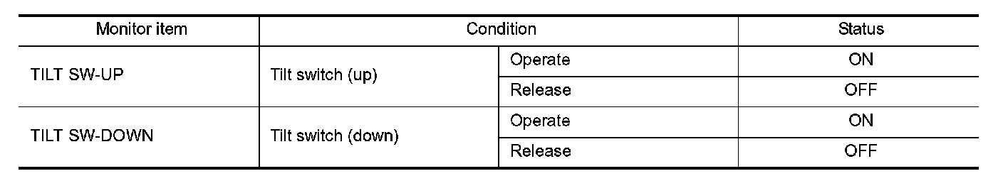 1.Select "TILT SW-UP", "TILT SW-DOWN" in "Data monitor" mode with CONSULT.