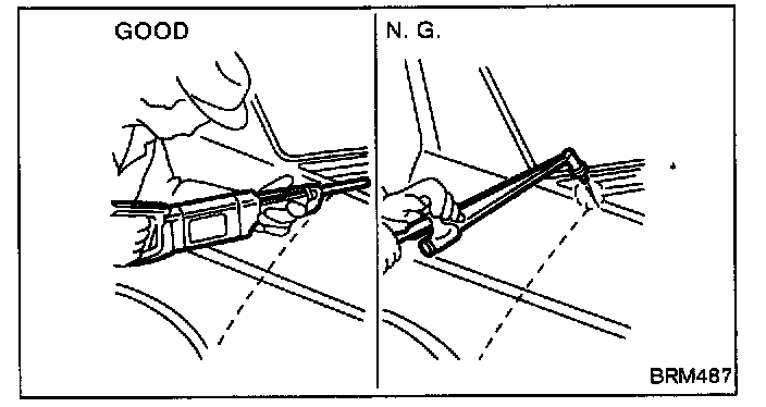 b. When straightening body panels, use caution in pulling any HSS panel. Because HSS is very strong, pulling may cause deformation in adjacent portions of the body. In this case, increase the number of measuring points, and carefully pull the HSS panel.