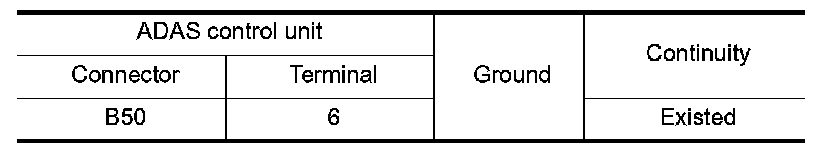3.Check for continuity between ADAS control unit harness connector and ground.