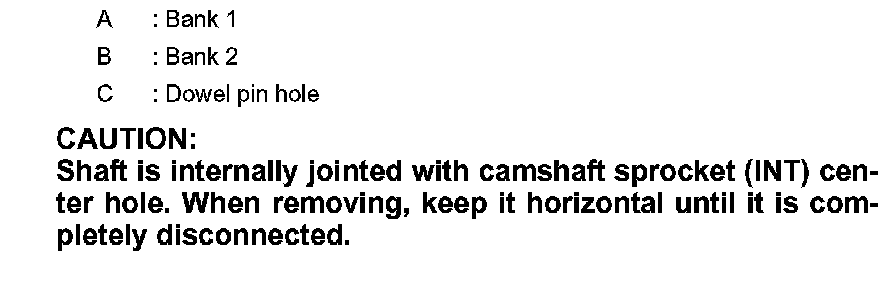 Shaft is internally jointed with camshaft sprocket (INT) center hole. When removing, keep it horizontal until it is completely disconnected.