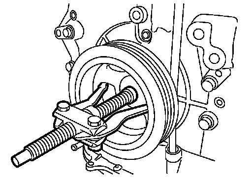 Never put suitable puller tab on crankshaft pulley periphery, because this damages internal damper.