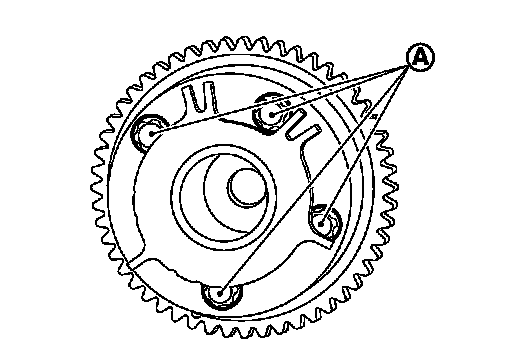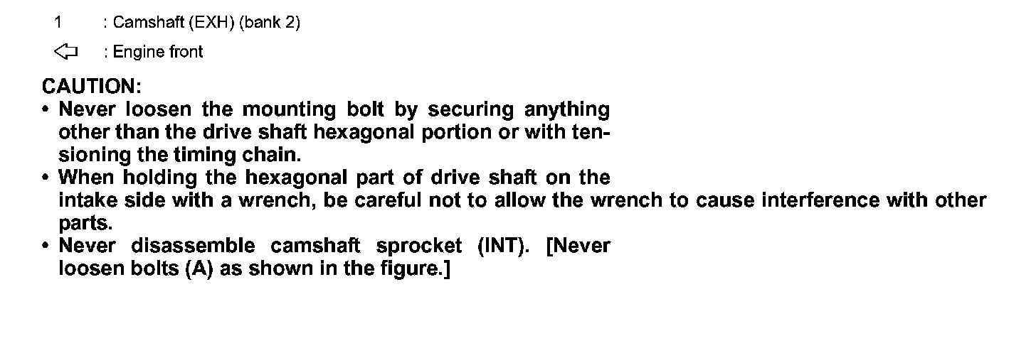 - Never disassemble camshaft sprocket (INT). [Never loosen bolts (A) as shown in the figure.]