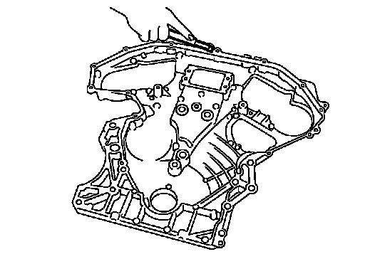 37.Use a scraper to remove all traces of old liquid gasket from front and rear timing chain cases and oil pan (upper), and liquid gasket mating surfaces.