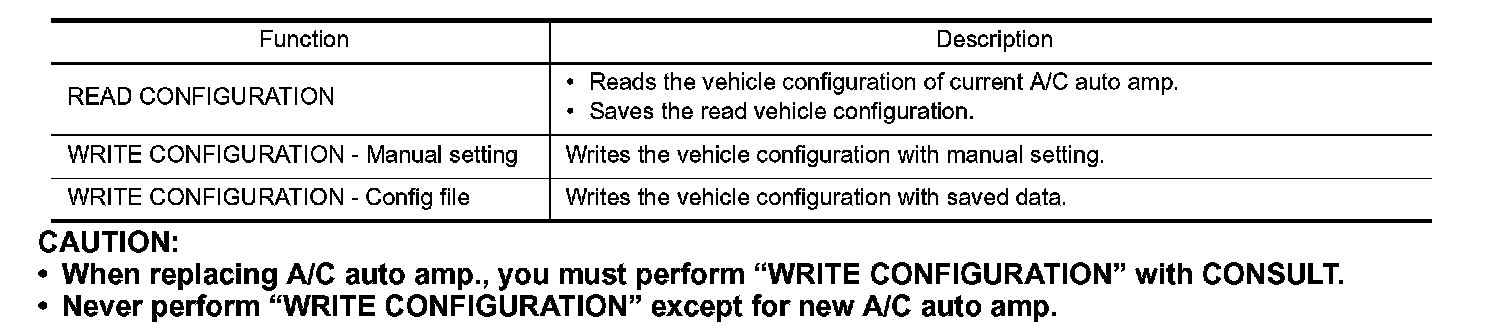 - Never perform "WRITE CONFIGURATION" except for new A/C auto amp.