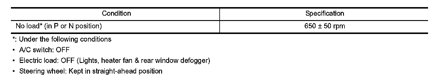 Idle Speed: Specifications