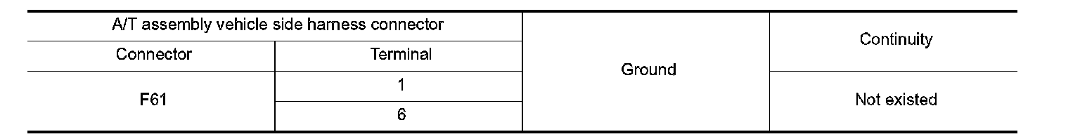 Check continuity between A/T assembly vehicle side harness connector terminal and ground.