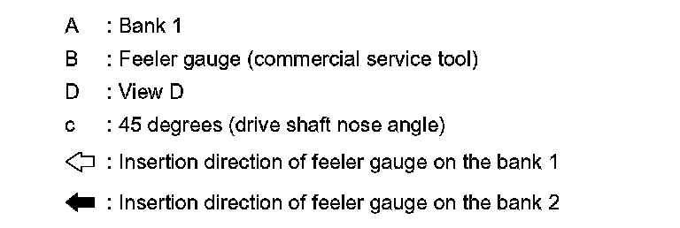 - Refer to the illustration for the insertion direction of the feeler gauge since the direction depends on the bank.
