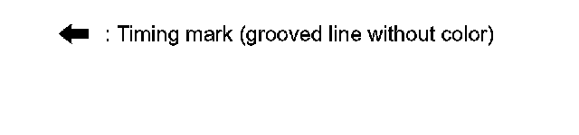 - Rotate crankshaft pulley clockwise to align timing mark (grooved line without color) with timing indicator.