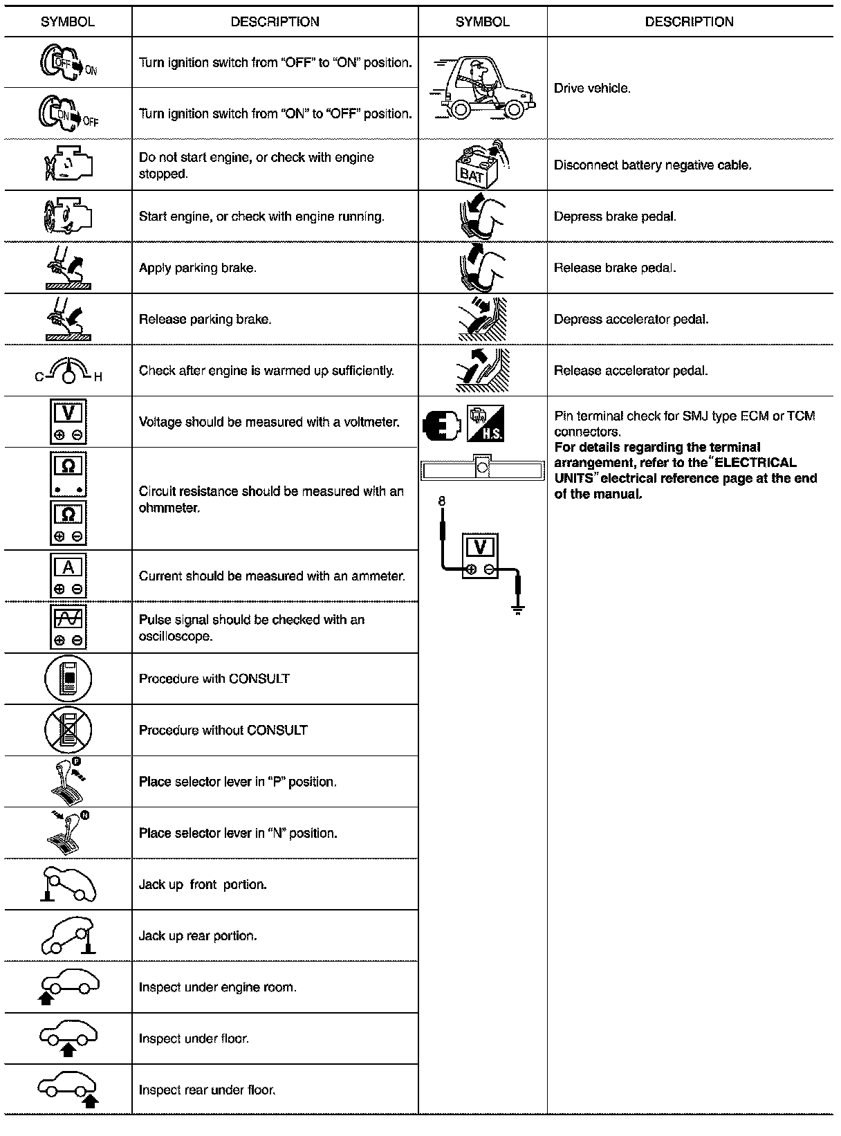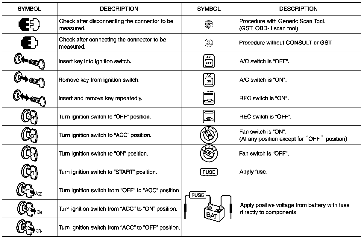 Key To Symbols Signifying Measurements Or Procedures