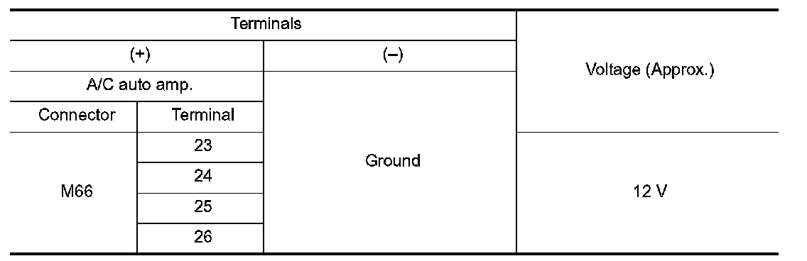 2.Check voltage between A/C auto amp. harness connector and ground.