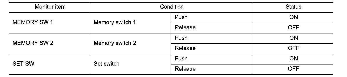 1. CHECK SEAT MEMORY SWITCH SIGNAL