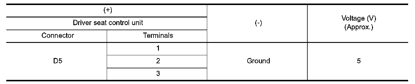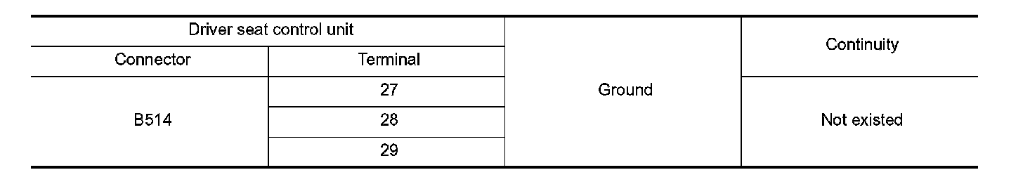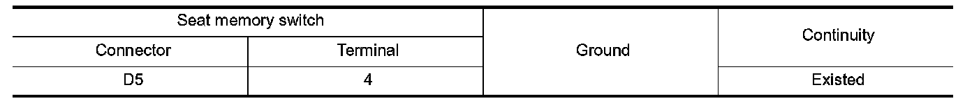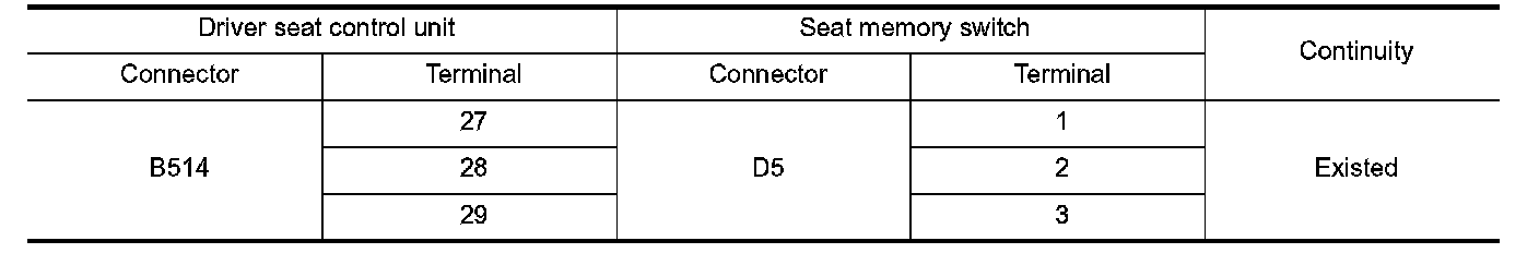 3.Check continuity between driver seat control unit harness connector and seat memory switch harness connector.