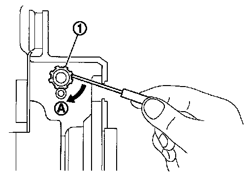 4.Remove the adjusting hole plug from the disc rotor. Turn the adjuster (1) in the direction (A) as shown in the figure using a suitable tool until the disc rotor is locked.