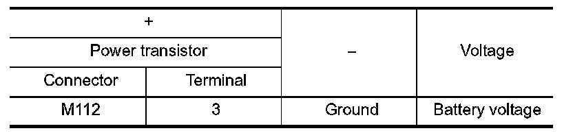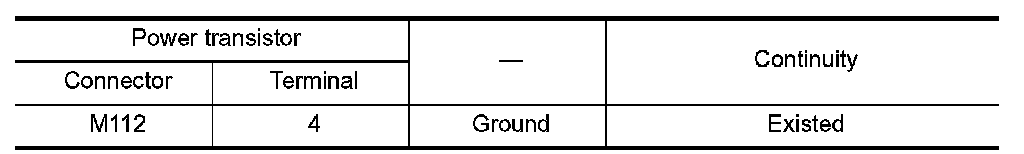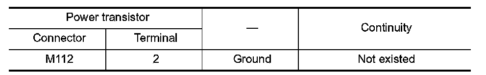 2.Check continuity between power transistor harness connector and ground.