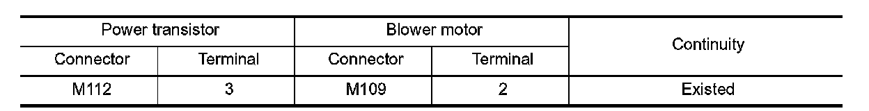 3.Check continuity between power transistor harness connector and blower motor harness connector.