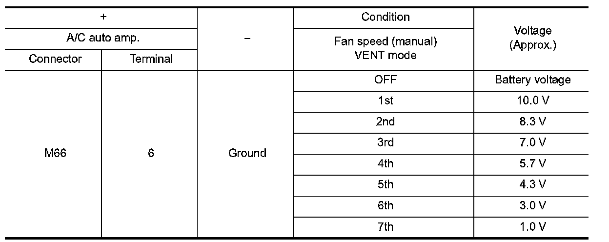4.Check voltage between blower motor harness connector and ground.