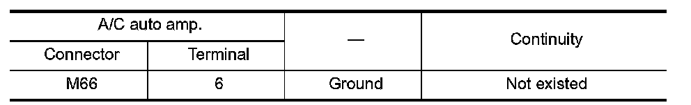 Check continuity between A/C auto amp. harness connector and ground.