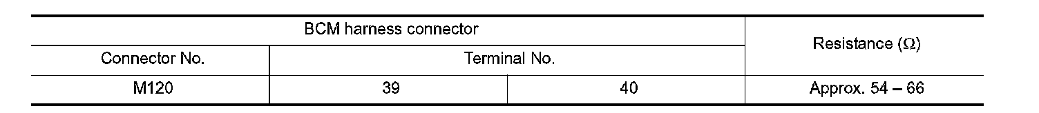 2.Check the resistance between the BCM harness connector terminals.