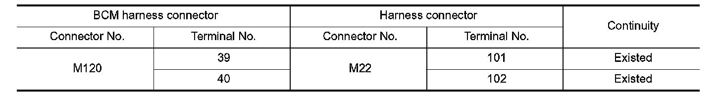 NO- Repair the harness between the BCM harness connector M120 and the harness connector M22.