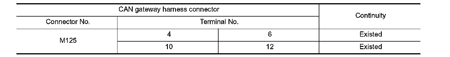 2.Check the continuity between the CAN gateway harness connector terminals.
